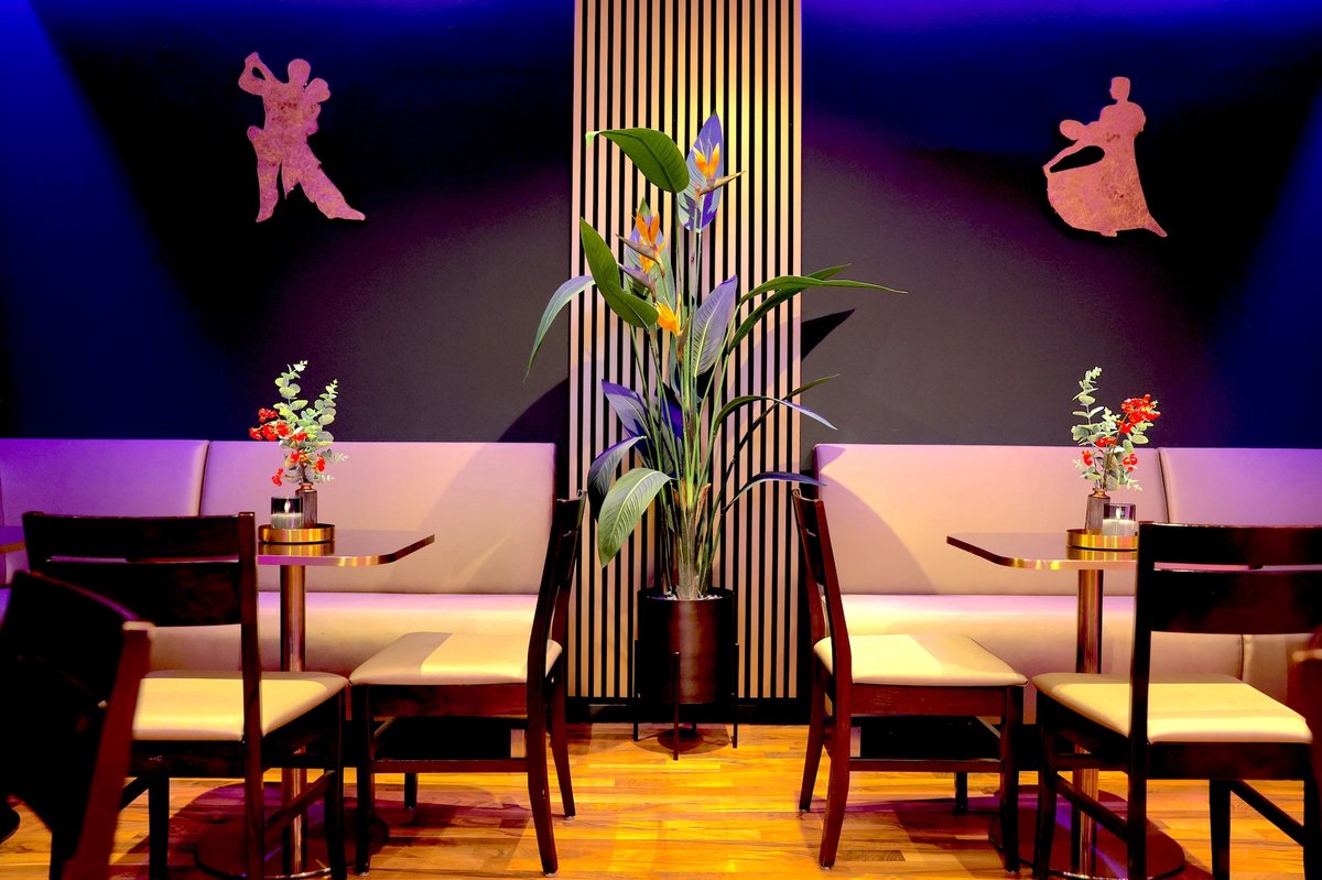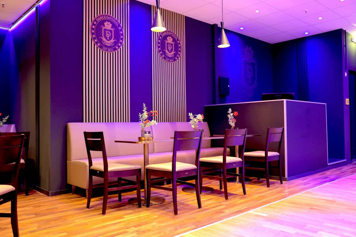 Saal 2 ist der kleinste Raum im DANCEIMPERIAL – und zugleich der gemütlichste. Eine stilvolle Couchgarnitur und geschickt inszenierte Sitzflächen schaffen eine behagliche Atmosphäre, die durch stimmungsvolle Beleuchtung und harmonische Farbgestaltung unterstrichen wird. Das Design fügt sich nahtlos in das Gesamtkonzept der Tanzschule ein.