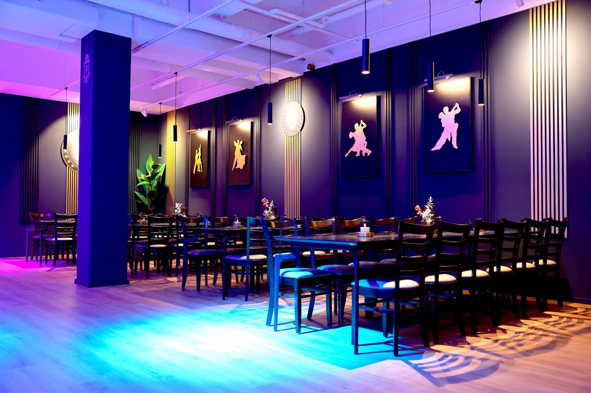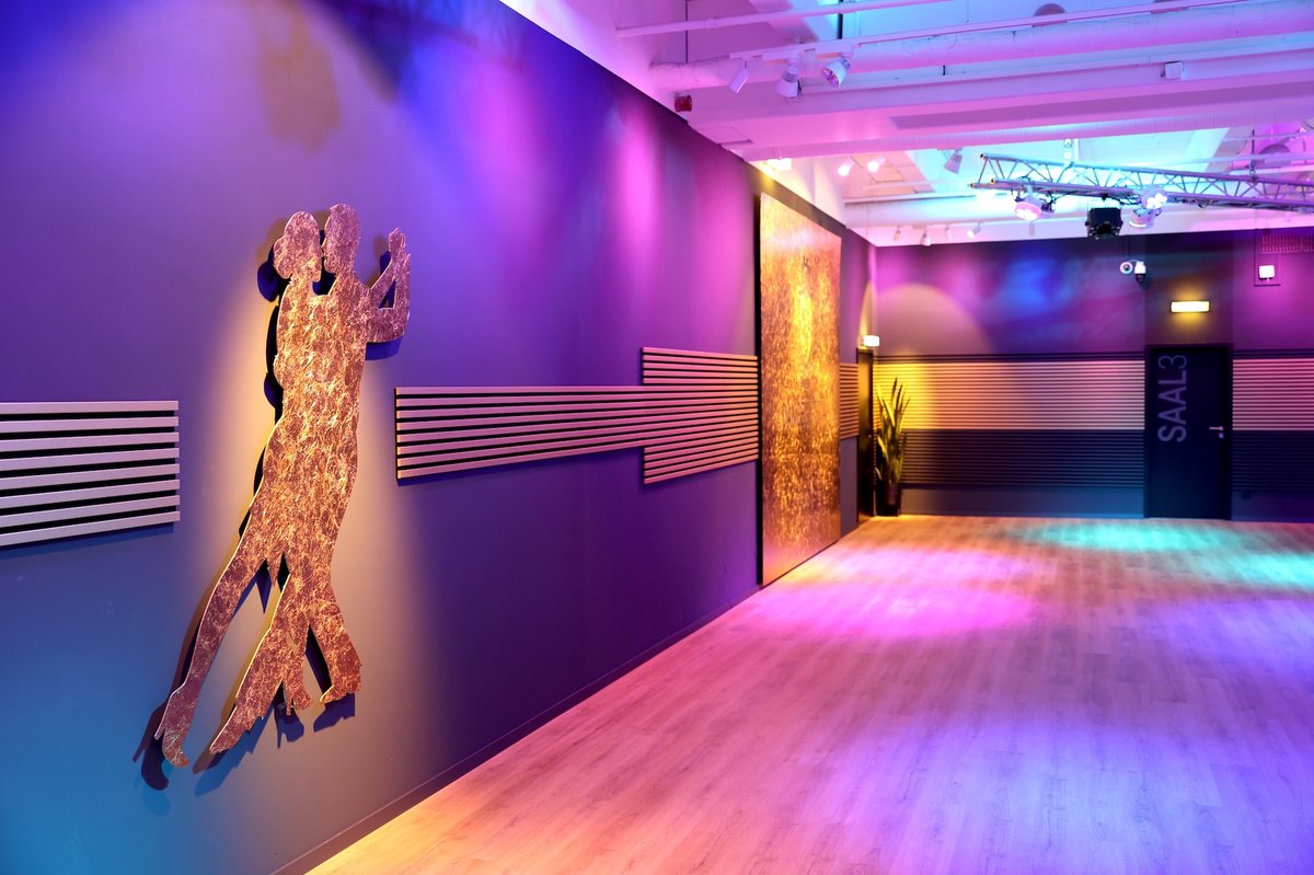 Vergoldete, eigens entworfene Gemälde mit Tanzmotiven verleihen dem Raum eine moderne und zugleich edle Note. Dank seines offenen Grundrisses ist Saal 3 besonders beliebt für Spezialveranstaltungen wie Boogie-Partys oder Tango-Argentino-Abende. Auch für Paartanzkurse bietet er optimale Bedingungen mit viel Platz und stilvollem Ambiente.
