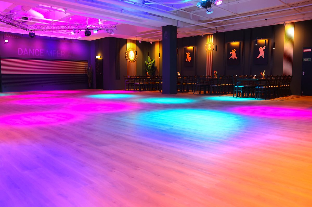 Mit seiner beeindruckenden Deckenhöhe von über vier Metern und einer großzügigen Tanzfläche zählt Saal 3 zu den imposantesten Räumen im DANCEIMPERIAL. Trotz der Größe sorgt ein durchdachtes Lichtkonzept für eine angenehme, gemütliche Atmosphäre – ideal, um zwischen den Tänzen zu entspannen oder einen Drink zu genießen.